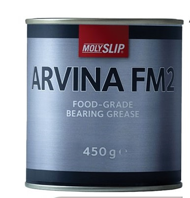MOLYSLIP ARVINA FM2 یک گریس جهت روانکاری یاتاقنها و بلبرینگ ها در صنایع غذایی فرموله شده که دارای استاندارد NSF/H1 ا که امکان برخورد تصادفی آن با مواد غذایی بلامانع می باشد. وجود روغن پایه با خلوص بالا و همچنین افزودنی های ضد ساییش و خوردگی این اجازه را به گریس مولی اسلیپ ARVANIA FM2 میدهد تا در طیف وسیعی از عملکردهای مکانیکی قابل استفاده باشد. گریس مولی اسلیپ ARVANIA FM2 مقاومت بسیار بالایی را در برابر آب و رطوبت داشته و تحمل دمایی 40- تا 150+ درجه سانتی گراد را داراست که همین امر باعث شده تا در طیف وسیعی از بلبرینگ های غلطکی و کشویی قابل کاربرد باشد.