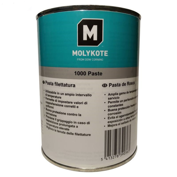 گریس مولیکوت 1000 (Dow MOLYKOTE™ 1000 Paste) نوعی روانکار جامد خمیری تک جزء بدون سرب و نیکل است. از این محصول جهت روانکاری اتصالات پیچ و مهره که در معرض دما های بسیار بالا تا 650 درجه سانتیگراد هستند استفاده می شود. این گریس قابلیت تحمل فشار های بسیار بالا را دارد. از سایر ویژگی های این محصول منحصر به فرد می توان به محافظت بالا در برابر خوردگی و زنگ زدگی و خاصیت ضد اصطکاک بسیار زیاد آن اشاره کرد. این گریس دارای ترکیبی از مدرن ترین روان کننده های جامد می باشد. این محصول ساخت کشور آلمان می باشد.