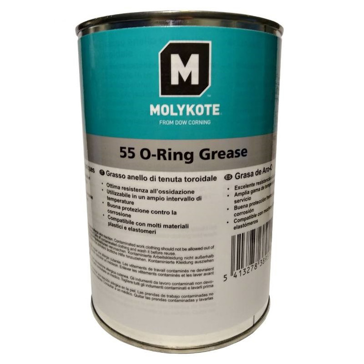 گریس مولیکوت 55 یا Dow MOLYKOTE™ 55 O-Ring Grease، نوی گریس سیلیکون است که جهت روانکاری اورینگ (O-Ring) های گوناگون استفاده می شود. از این محصول جهت گریس کاری محل اتصالات لاستیک با فلز در سیستم های پنوماتیک هواپیما ها، اتومبیل ها و ماشین آلات صنعتی استفاده می شود. از ویژگی های این محصول منحصر به فرد می توان به مقاومت عالی در برابر اکسایش (زنگ زدگی)، محافظت خوب در برابر خوردگی، محدوده دمایی فعالیت بالا از -65 درجه تا +175 درجه سانتیگراد و سازگاری با بسیاری از پلاستیک ها و الاستومر ها، اشاره کرد. این محصول ساخت کشور آلمان می باشد.